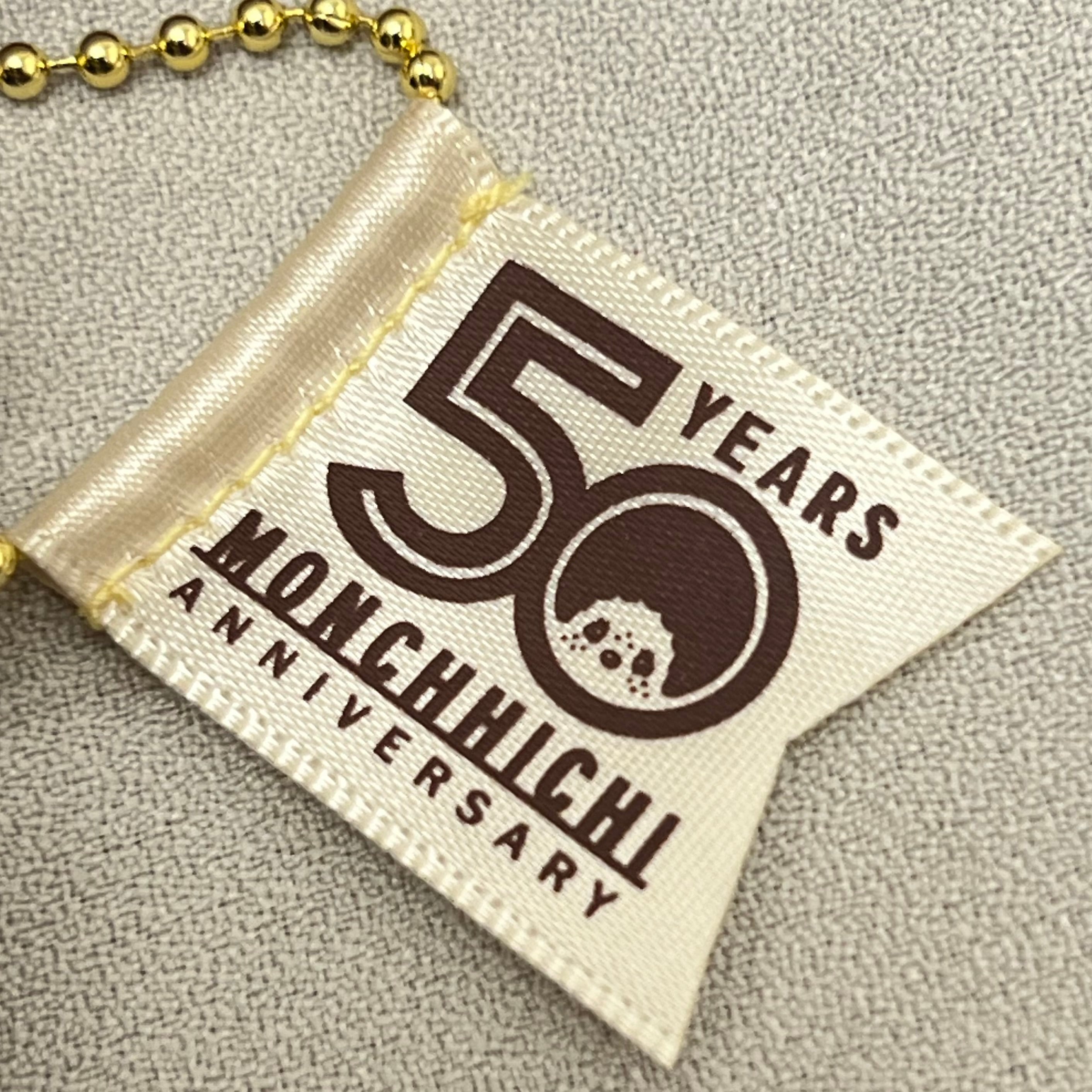 50周年ロゴのリボンネームがボールチェーンに取り付けてあります。
