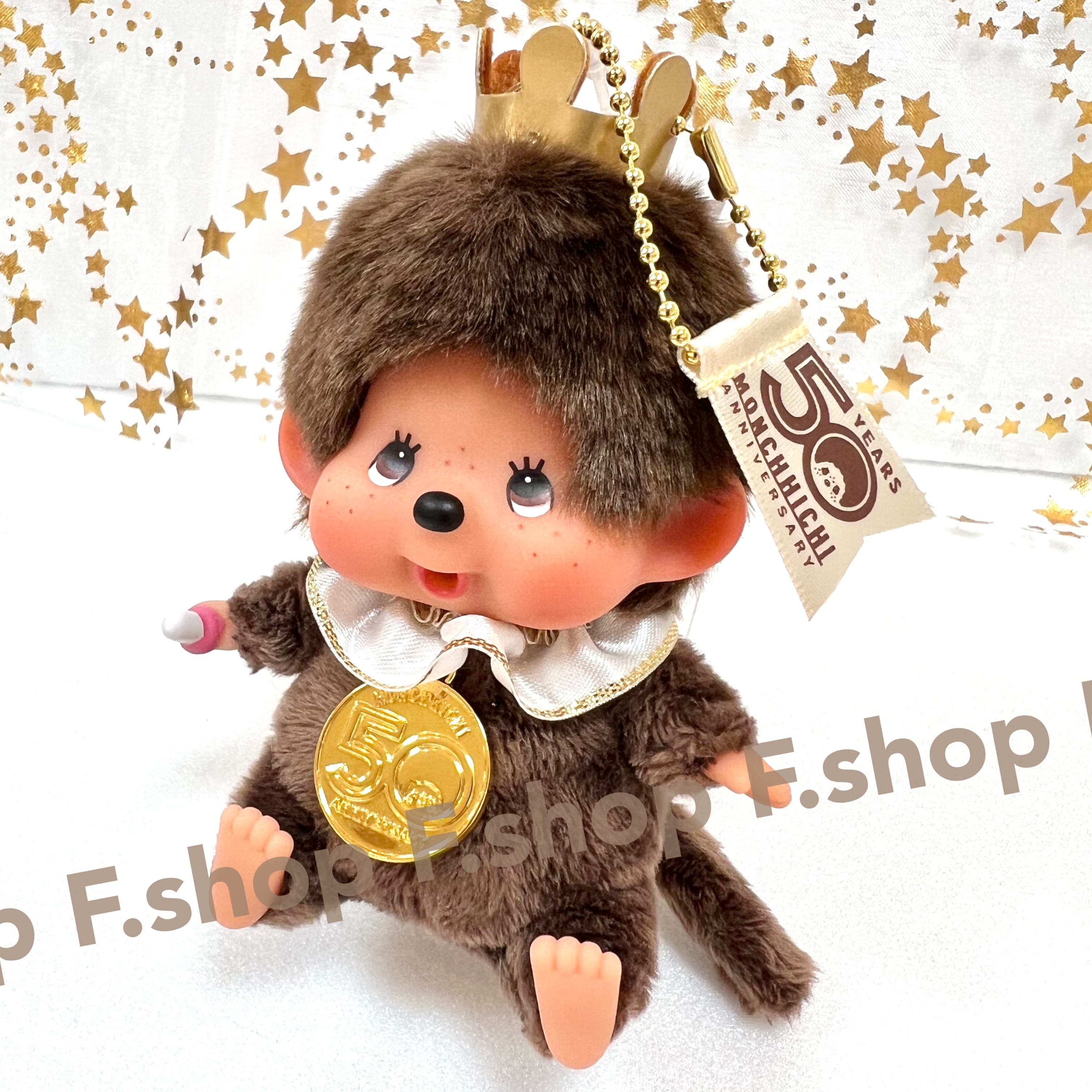 頭の王冠・首元のアニバーサリーコインは糸止めされています。